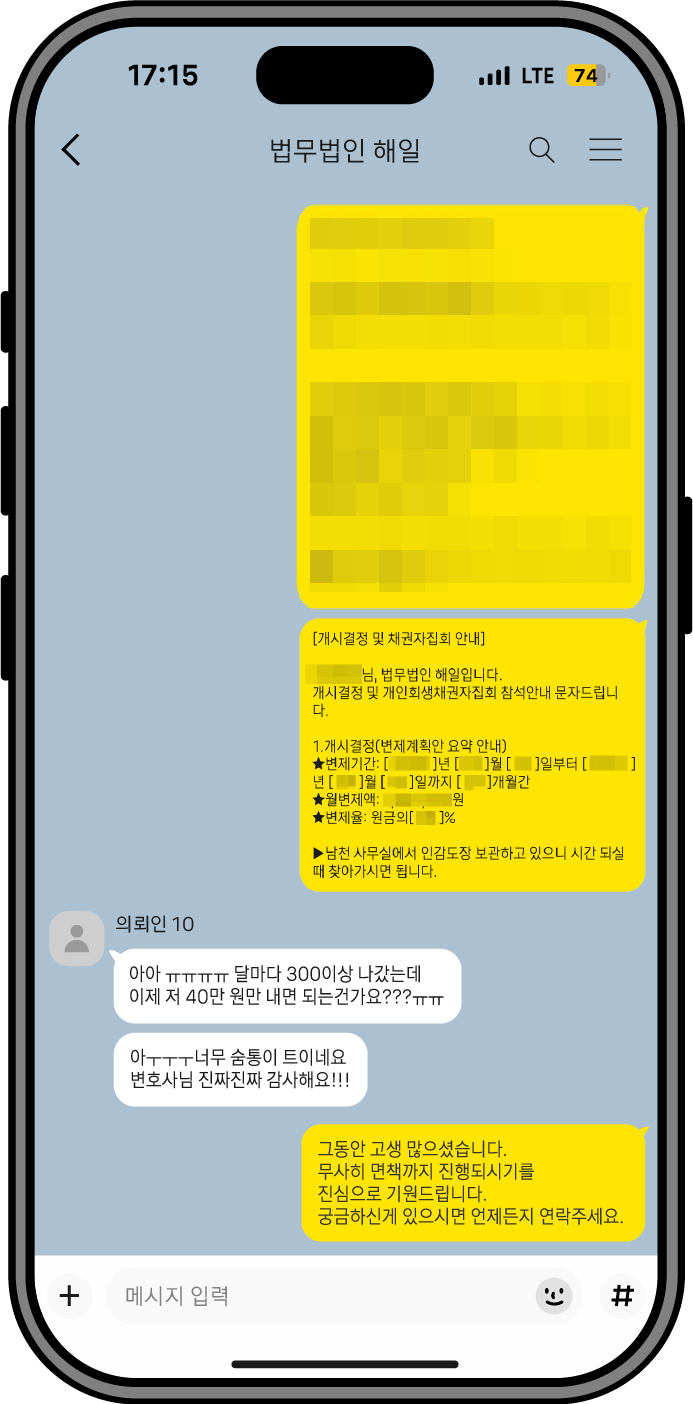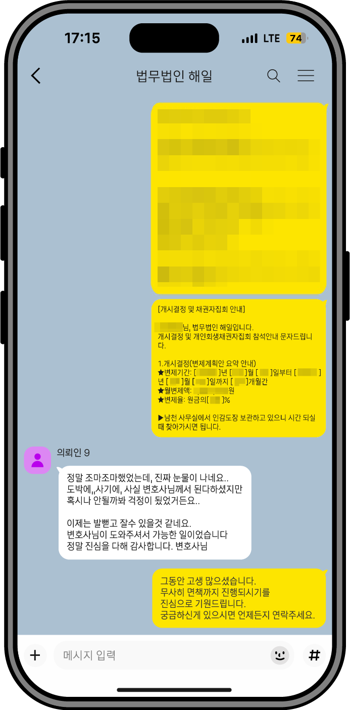 회생 과정 전반에서 느끼신 변화와 만족도를 생생한 경험담으로 전달드립니다.